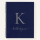 Chic Elegant Silver Monogram Script on a chic navy blue Spiral Notebook. Easy to customise with your own name and details. Perfect for your luxury lifestyle! Please contact us at cedarandstring@gmail.com if you need assistance with the design or matching products.