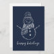 Modern Navy Blue Simple Snowman Outline Holiday Card