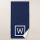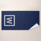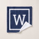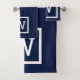 Modern Navy Blue Square Border Monogram Bath Towel Set