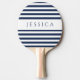 Modern Navy Blue Striped Custom Name Ping Pong Paddle