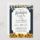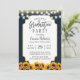 Modern Navy Blue Sunflower Floral Graduation Party Invitation