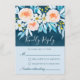 Elegant yet modern wedding RSVP card design featuring beautiful watercolor roses, flowers and other foliage on a navy blue watercolor background. Reverse side of the card is in pale blue colour.