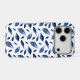 Pretty navy blue phone case that features a modern watercolor leaf pattern.