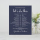 This stylish wedding schedule-timeline can be personalised with your wedding details set chic white lettering on a navy blue background. Designed by Thisisnotme©
