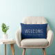 Modern navy blue Welcome Family monogram name, pillow.