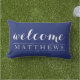 Modern navy blue Welcome Home Custom Last Name Lumbar Cushion