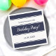 This elegant navy blue and white napkin is perfect for a modern birthday. The simple design features sleek navy blue-and-white calligraphy on a background of navy blue-and-white stripes.