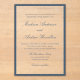 Announce your wedding with classic sophistication using this navy border acrylic wedding invitation. A rich navy frame surrounds the design on a clear acrylic background, creating a bold yet timeless contrast that feels refined and polished. The couple’s names are featured in elegant calligraphy, with wedding details displayed below in traditional serif lettering for a clean and balanced presentation. Perfect for formal ceremonies, traditional venues, and modern classic weddings, this acrylic invitation offers a versatile and elevated foundation for a cohesive wedding stationery suite.