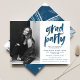 Invite guests to celebrate the grad with our photo graduation party invites! The modern graduation party invitations feature the graduate's vertical photo. "Grad Party" is displayed in a navy-painted brush font. Personalise the front of the invite by adding the graduate's name, school name, graduation year, and graduation party details. The invite reverses to display your graduation party details with a navy and white brush stroke background.