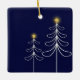 Modern Navy Christmas Tree Graphic Ceramic Ornament