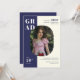 Invite guests to your graduation party with this chic minimal photo graduation party invitation template. The design features one photo, sophisticated colour palette including navy blue and cream, and bold modern typography. Personalise it with your details and favourite photo.