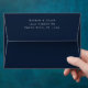 Elements: rich dark tones, abstract watercolor background, light frame details, and classic serif fonts. Colours: blue, green, navy, dusty blue, steel blue, slate blue, sage green, hunter, highland, mint. Themes: modern, contemporary, abstract, moody, under the sea, ocean, dark colour tones, minimalist, painterly, bohemian. Collection: Modern Navy Emerald Abstract Watercolor Wedding Collection. Product Type: Envelope
