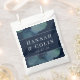 Elements: rich dark tones, abstract watercolor background, light frame details, and classic serif fonts. Colours: blue, green, navy, dusty blue, steel blue, slate blue, sage green, hunter, highland, mint. Themes: modern, contemporary, abstract, moody, under the sea, ocean, dark colour tones, minimalist, painterly, bohemian. Collection: Modern Navy Emerald Abstract Watercolor Wedding Collection. Product Type: Favour Bag