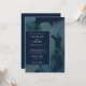 Elements: rich dark tones, abstract watercolor background, light frame details, and classic serif fonts. Colours: blue, green, navy, dusty blue, steel blue, slate blue, sage green, hunter, highland, mint. Themes: modern, contemporary, abstract, moody, under the sea, ocean, dark colour tones, minimalist, painterly, bohemian. Collection: Modern Navy Emerald Abstract Watercolor Wedding Collection. Product Type: Wedding Invitations