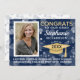 Festive and fun bubbles bokeh pattern in your school colours, and senior photo Graduation Announcement Party Invitation. Announce the achievement with this exciting and bubbly fun announcement. Invite everyone, family and friends to a drive through or in person grad party. Congrats to our grad! Customise the school colour by clicking "customise further" and changing the front and back background colour.