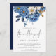 Modern Navy Gold Florals QR Code Wedding Invitation