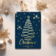 Modern Navy Gold Ribbon Tree Christmas Photo Card