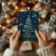 Celebrate the holidays in style with this navy and gold Christmas card! Featuring a flowing ribbon tree and golden stars, it’s both modern and timeless. Personalise the back with your favourite family photo to create a festive keepsake for loved ones.