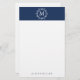 Add style to your stationery collection with beautiful, modern navy monogrammed stationery. The stationery's header features a navy background, decorative frame, and custom monogram. The design's footer features a personalised placeholder that is perfect for your name and contact information.