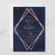 Modern Navy Rose Gold Geometric Border Wedding Invitation