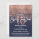 Modern Navy Rose Gold Glitter Confetti Sweet 16 Invitation