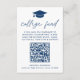 Celebrate your high school graduate’s achievement with this elegant college fund enclosure card featuring a navy graduation cap at the top and "College Fund" in modern navy script on a white background. Easily customise it with the graduate’s name, school name, graduation year, and personalised instructions. A convenient QR code allows friends and family to contribute effortlessly to their college fund. This stylish and practical design is the perfect addition to graduation announcements, party invitations, or thank-you cards.