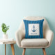 Add a nautical touch to your home decor with this modern navy blue striped anchor custom throw pillow. Personalise with your family last name.