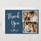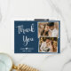 Elegant, Minimalist Hand Lettered Script Navy White Wedding Photo Collage Thank You Card. Stylish wedding multi photo thank you card template featuring two (2) photo on the front and one (1) photo on the back. With the text "Thank You" in a pretty hand-written typography script font in white on dark navy blue colour background. Personalise the custom name and thank you message. If you prefer to handwrite your note, just delete the sample text to make more space. If You need help or matching item, please contact to designer!
