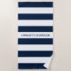 Modern navy white stripes custom name monogram beach towel