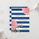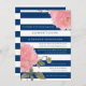 MODERN Navy Wide Stripes Pink Peony Flowers Floral Invitation