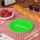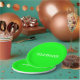 Modern neon green and white custom name, text, birthday party Paper Plates.
