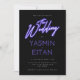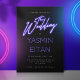 Make your wedding stunning with these cool invitations by JessicaAmber. This card features bright neon script lettering, and the name of the wedded pair in lights. Modern white lettering lays out the details of the wedding, including the location, date and time. The purple glow stands out against a black background. Great for a Vegas wedding!