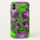 Modern Neon Pink Green Fractal Flowers Monogram Case-Mate iPhone Case