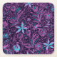 Modern Neon Purple Floral Pattern Square Paper Coaster