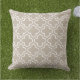 Stylish pillow features a modern decorative Moroccan quatrefoil pattern in white. Customise the neutral beige / taupe background to coordinate with your outdoor decor.