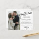 Reschedule your wedding day with this modern, chic, and easy New Date announcement in brushed calligraphy. A wedding save-the-NEW-date with a heart on back. Easily customise with names, event date, and important details.