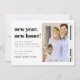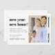 A modern photo card to announce your recent move to your family and friends. The simple design features your photo with new year new home in bold typography. Personalise with your address and name.