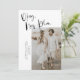 A unique way to announce your wedding day change of plans. This new save the date design features a modern calligraphy script along with your awesome photo. The back of the card features an iridescent rose-gold abstract pattern against a powder blue background. You can easily customise your personal info of choice. Check out the background colour options in our: Okay, Change of Plans Collections