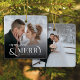 Modern Newlywed Married & Merry Christmas 2 Photo Ceramic Ornament