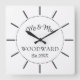 Modern newlyweds wedding gift clock in simple script and serif typography, with your name and wedding date.