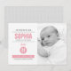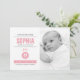 Customise this Stylish Modern Custom Photo Baby Girl Birth Announcement, designed as a modern newspaper design announcement. Insert your own information and your favourite photo of your little baby. Clean, fresh and light design with lots of white in combination with pink and grey text. Perfect for a vertical image of a baby girl. *Template photo credit: © Eric Fleming