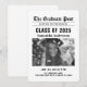 Celebrate the Class of 2025 in style with this unique newspaper-inspired graduation invitation! Featuring a modern black-and-white layout, bold headline-style typography, and a custom photo, this editable template is perfect for high school or college grads who want to make a statement. Easily personalise the name, date, time, location, and photo. A fun and memorable way to invite friends and family to the big celebration! Ideal for print or digital use.