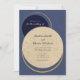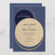 Modern geometric design utilising circles in soft blue, navy, cream and golden yellow colours.