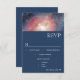 Elements: watercolor background containing galaxies stars and nebulae (nebulas?) Colours: blue, purple, pink, burgundy, plum, cranberry, mulberry, yellow, gold, & white. Themes: space, stars, universe, night, galactic, a night under the stars, written in the stars, heavenly, celestial, modern, contemporary, evening wedding, outdoor wedding. Collection: Modern Night Sky Galaxy Blue Purple Red Wedding Collection. Product Type: RSVP w/Menu Choice
