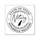 Modern Notary Public self inking stamp. Design features round border, typography script notary in trendy handwritten lettering and a feather ''pen''. Personalise with your details.