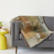 A quality printed throw has its advantages. This is a much finer weave throw than its loopier cousins, and though lighter, it is worth the investment for custom room accessorizing. The back is much prettier than the typical brown, and the fringe on the long sides very vivid, the selvage nicely done. Before photographing, I washed the throw in cold water, delicate, with a thicker woven throw the same size. On tumble dry low, this throw was dry in half the time as the other. This is a very practical quality if you use throws for furniture covers or to wrap up in frequently. The sleekness of the fabric makes it a great layer for accenting or protecting without the feeling of sitting on too much stuff. Perfect for napping or when you feel a light chill coming on. The color printing is beautiful and on this fabric, matched the design and color of my Photoshop image. This is an advantage for blending room fabrics and colors. The fringe on the short sides prints the colors from the design image and therefore varies from the side fringe. I streaked a white fractal line through the plaid pattern to give the illusion of weaving. This printed as crisp as an illusory thread, and put some white in the short side fringe, showing another advantage of print vs loomed- for artistic purposes, line lines, detail, and color integrity can be planned and preserved. My loomed throws have color limitations and more of a needlepoint texture. Print throws reproduce an exact image. The throw felt a little stiff straight out of the package, but this went away in the first delicate wash. Of course I searched the wash water for ink or bleeding and there was none.