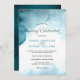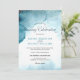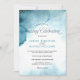 Modern ocean blue / turquoise ombre watercolor wedding invitation card with golden glitter / confetti