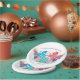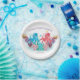 Elegant ocean sea themed paper plate featuring adorable watercolor illustration of a sweet baby Twins octopus and modern botanical seashells in green, blue and pink. The text fields are fully editable. You can change the wording to suit your event, e.g. birthday, baby shower / sprinkle, baptism, christening, naming day, etc