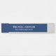 Custom, personalised, professional, modern, classy, stylish, elegant, long size, business office cabin silver colour finish classic navy blue and white script / typography, wall or door hanging metal sign name plate. To customise, simply type in your full name and designation / title. While you personalise, you'll be able to see a preview throughout. Perfect for small business, office, consultants, entrepreneurs, business owners. Makes a great gift for employees, staff, managers, accountants, attorneys, real estate sales agents, lawyers, auditors, brokers, realtors, executives, corporate professionals, teachers.