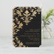 NOTE: This is a flat printed image, there is no actual glitter, gold metallic ink or layers. COLOR PALETTE: Gold metallic glitter look and black DESIGN COLLECTION: A matching Bridal Shower party invitation. Truly suited for a formal black tie event, wedding or reception, this design was created using a modern leaf scroll swirling leaves with a stylised flour de lis look damask element. Also has a hand lettered script scroll calligraphy word element "and" by Audrey Jeanne Roberts. The offset diagonal square inside the damask adds a touch of modern trending style and elegance. On the reverse side is repeat of the design with your monogram large and the bride and groom's names. Your personalised invitation wording can easily be customised with the simple template fields provided. Available any colour background. Just contact us and we'll match your wedding colour.